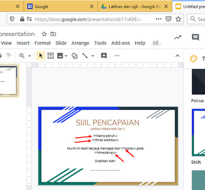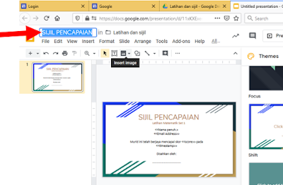 10. Seterusnya, kita akan membuat fail sijil terlebih dahulu dengan menggunakan format Google Slides