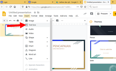 15. Untuk menambah tulisan, klik pada menu Insert, seterusnya klik pada Text box
