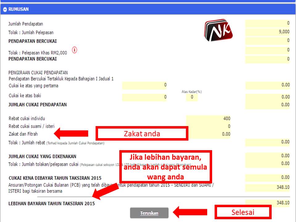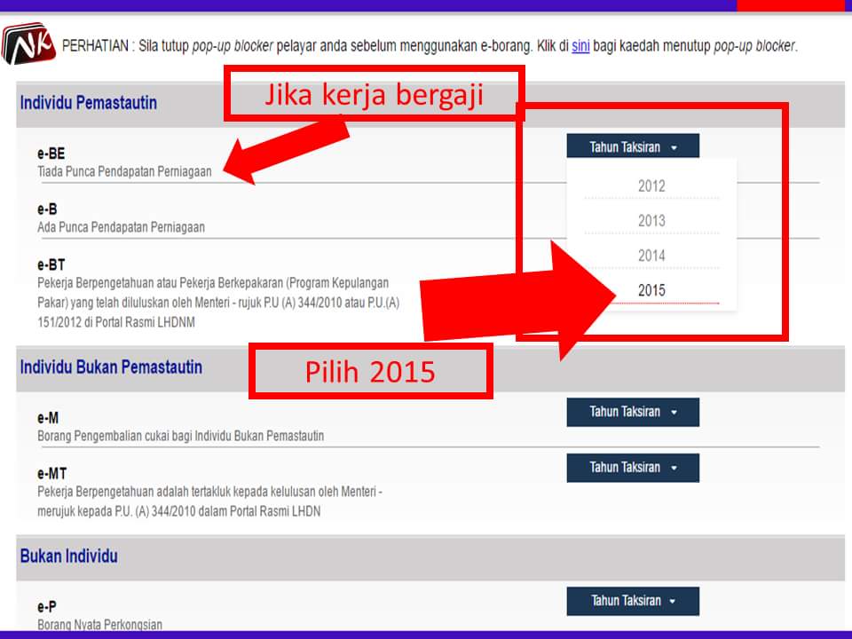 1. Mulai Tahun 2015 individu yang mempunyai pendapatan penggajian tahunan melebihi RM34,000 (selepas potongan KWSP) perlu mendaftar fail cukai pendapatan.