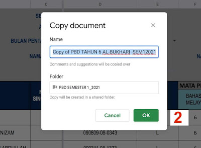 Klik Ok dan biarkan sahaja nama fail Copy ada di hadapan nama fail pbd excell