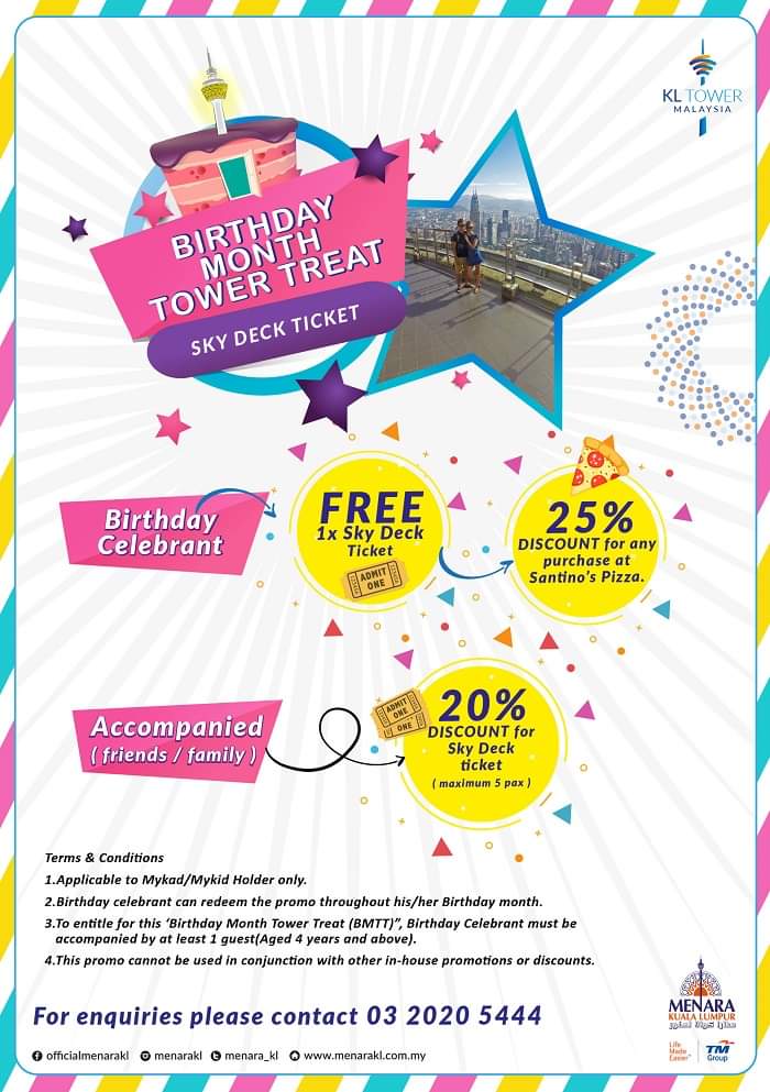 Mesti ramai yang belum tahu, KL Tower sekarang ada promosi tiket percuma untuk pengunjung yang datang ke KL Tower pada bulan kelahiran mereka!