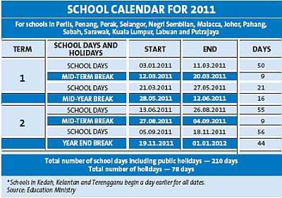 Penggal Cuti dan Hari Persekolahan Mula Akhir Hari