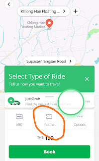 Bagi pengunjung yang datang ke Thailand, anda boleh menggunakan ‘promo code’ ini bagi mendapatkan potongan jika menaiki grab ke sesuatu destinasi. Kod promo ini saya gunakan semasa bercuti ke Hatyai, Thailand baru-baru ini.
