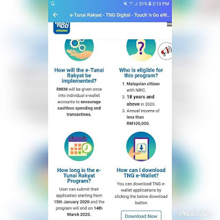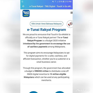 Percuma RM30 Ewallet TNG e-Tunai Rakyat