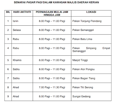 Berikut merupakan senarai pasar pagi yang terdapat di sekitar Parit Buntar, Bagan Serai, Tanjung Piandang, Kuala Kurau, Bukit Merah, Semanggol dan Selinsing.