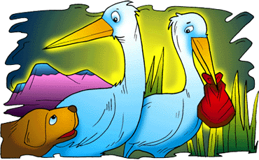 “That’s alright,” answered the crane. But the crane actually felt very angry with the dog.