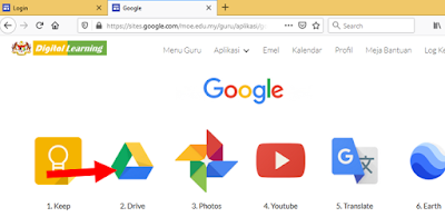 6. Di dalam menu Aktiviti ini, klik pada menu Google dan seterusnya klik pada menu Drive