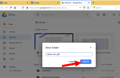 8. Taip nama folder baru tersebut sebagai Latihan dan sijil, seterusnya klik Create