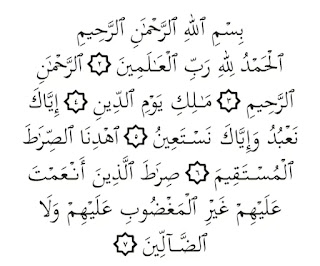 Dengan nama Allah, Yang Maha Pemurah, lagi Maha Mengasihani. Segala puji tertentu bagi Allah, Tuhan yang memelihara dan Mentadbirkan Alam. Yang Maha Pemurah, lagi Maha Mengasihani. Yang Menguasai pemerintahan hari Pembalasan (hari Akhirat). Engkaulah sahaja (Ya Allah) Yang Kami Sembah dan kepada Engkaulah sahaja kami memohon pertolongan. Tunjukkan kami jalan yang lurus. Iaitu jalan orang-orang yang Engkau telah kurniakan nikmat kepada mereka, bukan (jalan) orang-orang yang Engkau telah murkai dan bukan pula (jalan) orang-orang yang sesat.