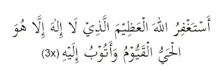 Aku memohon keampunan daripada Allah, Tuhan Yang Maha Agung, tiada Tuhan melainkan Allah. Dia hidup, berdiri dengan sendirinya, dan aku memohon keampunan daripadaNya.